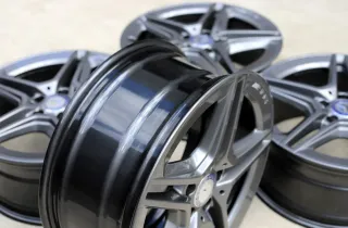 Keine Schäden erkennbar. Einwandfreier Zustand ohne Bordsteinkontakt. Perfekter Zustand. Felgen sind neu in Titanglänzend pulverbeschichtet und waren danach nicht mehr im Einsatz.Original: