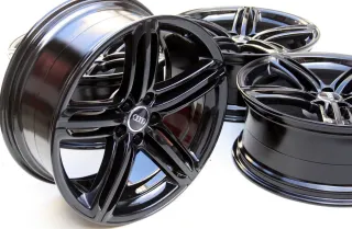 Die Felgen befinden sich in einem TOP Zustand ohne Bordsteinkontakt und sind komplett in schwarz glänzend pulverbeschichtet. Nach der Beschichtung an keinem Fahrzeug mehr montiert. Perfekter Zustand ohne Bordsteinkontakt. Die Felgen laufen perfekt rund.Original: