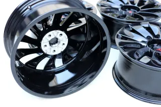 Perfekter Zustand ohne Bordsteinkontakt. Die Felgen befinden sich im neuwertigem Zustand. Keine erkennbaren Gebrauchsspuren durch Bordsteinkontakt. Schwarz glänzend pulverbeschichtet und anschließend nicht mehr im Einsatz, daher neuwertiger Zustand. Andere Nabendeckel sind auch vorhanden, die die Schrauben abdecken, sprechen Sie uns an.Original: