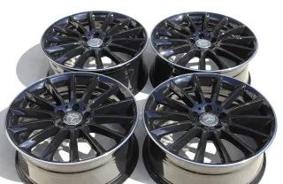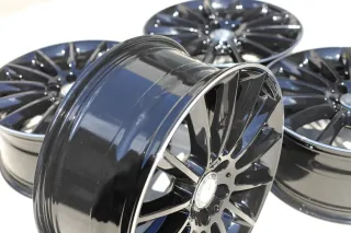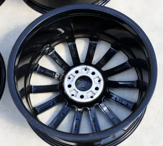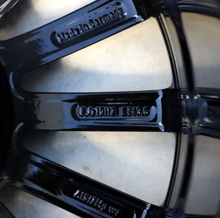 Die Felgen befinden sich in einem sehr guten Zustand ohne Bordsteinkontakt und sind komplett schwarz glänzend pulverbeschichtet. Dabei wurde der Rand glanzgedreht. An einer Felge ein kleiner Fehler. Die Felgen sind rundlaufgeprüft und laufen absolut sauber.Original: