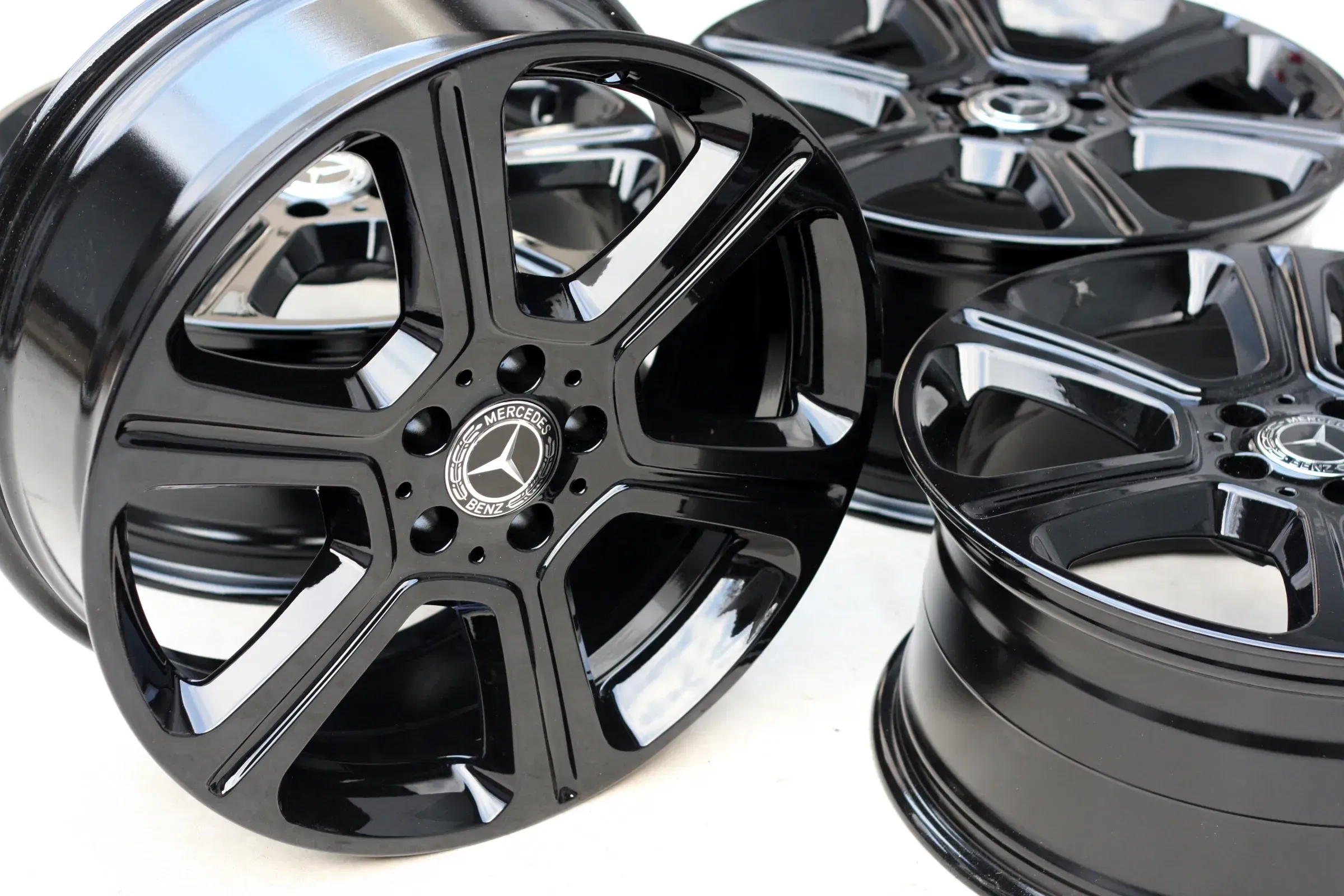 Die Felgen befinden sich in einwandfreiem Zustand, keine Schäden an der Front. Sie wurden fachgerecht in Schwarz Hochglanz beschichtet und nach der Aufbereitung nicht mehr gefahren. Der Rundlauf wurde auf der Wuchtmaschine geprüft – absolut ohne Beanstandung.Zoll Hinterachse: