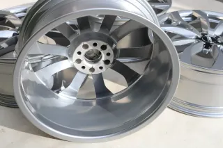 Die Felgen befinden sich in einem TOP-Zustand ohne Bordsteinkontakt und wurden zuvor sanft chemisch entlackt und anschließend sehr aufwendig veredelt. Silberchrome glänzend pulverbeschichtet. Danach nicht mehr am Fahrzeug verbaut, daher der Zustand absolut neuwertig.Original: