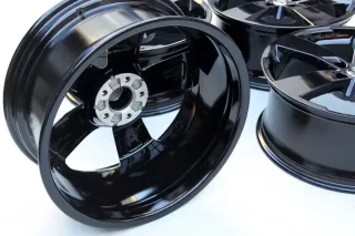 Zuvor waren die Felgen im langweiligen Silber. Daher neu in schwarz neu pulverbeschichtet. Zustand absolut neuwertig.Original: