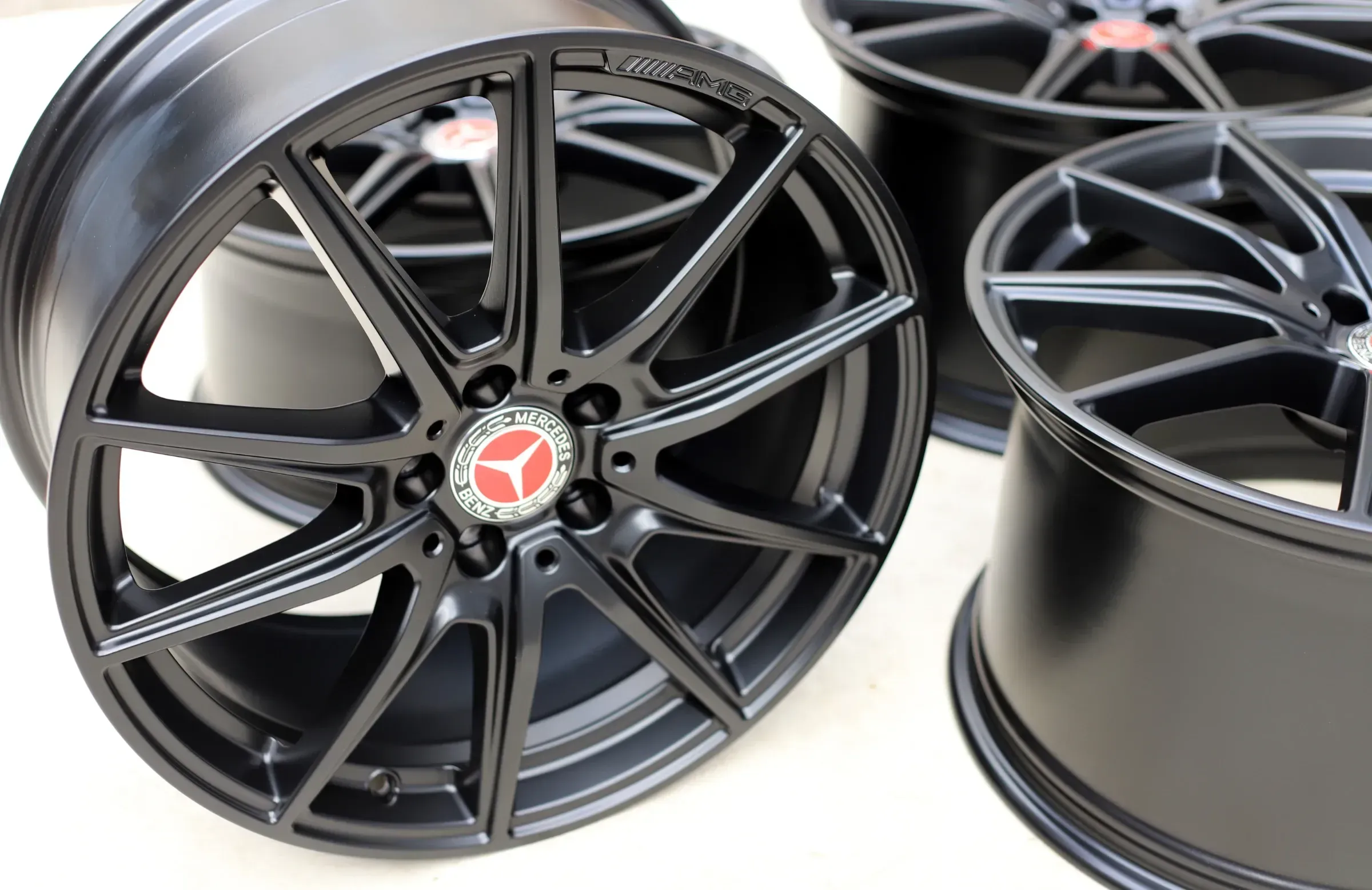 Die Felgen befinden sich in einwandfreiem Zustand – keinerlei Bordsteinkontakt oder Beschädigungen. Der Zustand ist nahezu neuwertig. Der Rundlauf wurde auf der Wuchtmaschine überprüft und ist absolut einwandfrei. Dank ihrer hochwertigen seidenmattschwarzen Pulverbeschichtung eignen sich die Felgen ideal als Ersatz oder stilvolles Upgrade – besonders passend für Fahrzeuge mit mattem oder dunklem FinishZoll Hinterachse:
