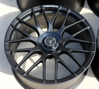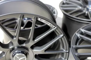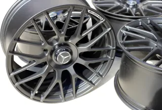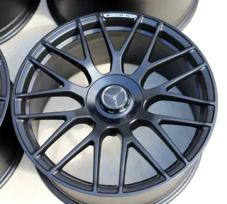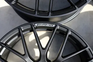 Die Felgen befinden sich in einem hervorragenden Zustand – keinerlei Beschädigungen oder Bordsteinkontakte vorhanden. Sie laufen absolut rund und präsentieren sich optisch wie technisch in einem neuwertigen Zustand. Besonderheiten: Sehr seltene Ausführung mit blankem AMG-Logo und matt-schwarzem Finish – eine besonders edle und sportliche Kombination.Original: