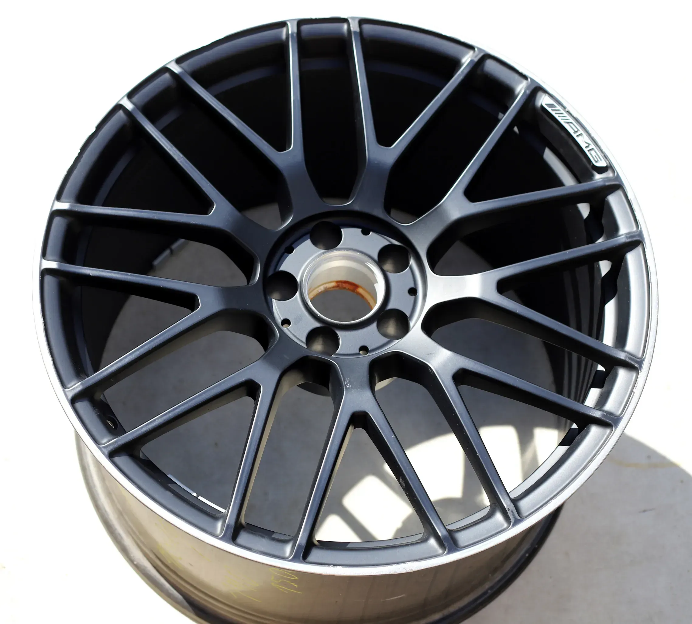 Originale AMG Alufelge mit Gebrauchsspuren an der Front. Ideal als Ersatzfelge oder zum Aufbereiten geeignet. Der Rundlauf wurde auf der Wuchtmaschine festgestellt.Original: