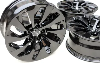 Sehr guter Zustand ohne Bordsteinkontakt. Die Felgen sehen wie NEU aus, da diese zuvor sanft entlackt worden sind sowie NEU in schwarz hochglanz pulverbeschichtet. Anschließend nicht mehr im Einsatz, daher Zustand absolut neuwertig.Original: