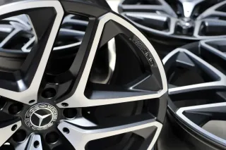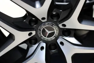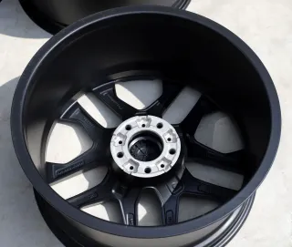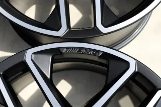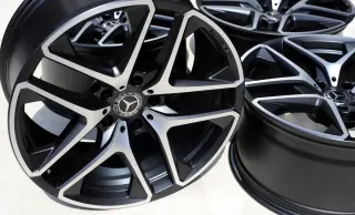 Keine Schäden an den AMG Alufelgen. Die Felgen sind professionell in Schwarz Matt beschichtet und die Front ist glanzgedreht. Seitdem nicht mehr im Einsatz. Der Rundlauf wurde auf der Wuchtmaschine festgestellt und ist 1A. Weitere Fragen werden zügig beantwortet. Die Felgen machen einen neuwertigen Eindruck.Original: