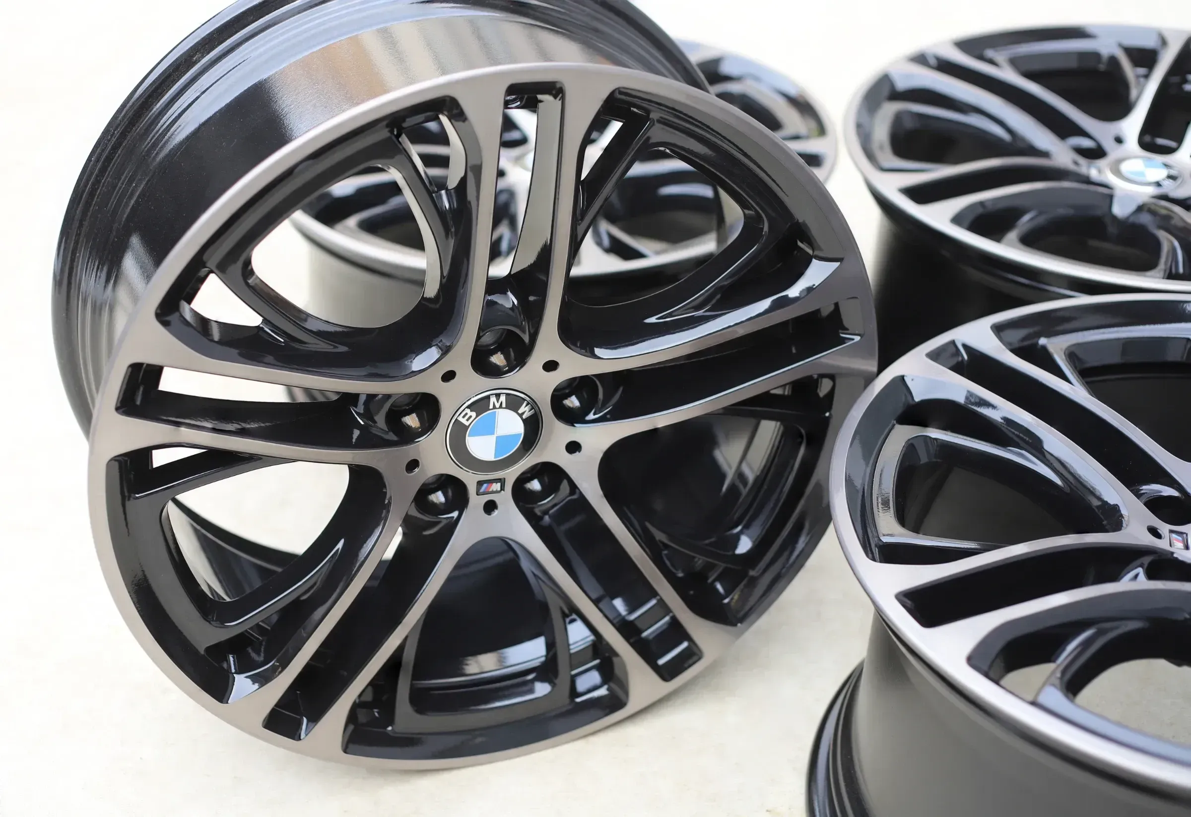 Die Alufelgen wurden professionell neu CNC-glanzgedreht und auf der Innenseite in Schwarz abgesetzt. Die Front ist zusätzlich mit einem dunklen Klarlack veredelt, wodurch ein besonders edler und einzigartiger Look entsteht. Eine wunderschöne Optik – mit die schönsten M-Paket-Alufelgen für den BMW X3 F25 und BMW X4 F26. Bei weiteren Fragen stehe ich Ihnen gerne jederzeit zur Verfügung und antworte schnellstmöglich.Original: