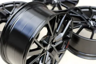 Perfekter Zustand ohne Bordsteinkontakt. Die Felgen befinden sich im quasi Neuzustand. Zuvor waren die Felgen im langweiligen Silber, daher in schwarz glanz pulverbeschichtet.Original: