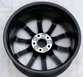 Perfekter Zustand ohne Beschädigungen. Die Felge ist neu in schwarz matt pulverbeschichtet, danach nicht mehr montiert. Bilder sind Realbilder und geben den Istzustand wieder. Der einwandfreie Rundlauf wurde auf einer Auswuchtmaschine diagnostiziert.Original: