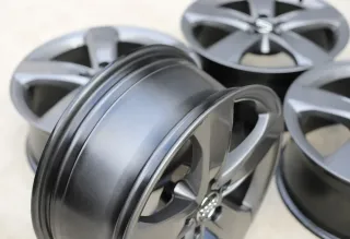Die Felgen befinden sich in einem TOP-Zustand ohne Bordsteinkontakt. Die Felgen sind komplett in Titan glänzend pulverbeschichtet. Anschließend an keinem Fahrzeug mehr verbaut.Original: