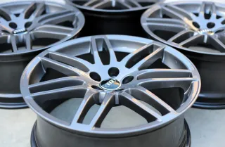 Die Felgen wurden aus ästhetischen Gründen professionell neu pulverbeschichtet und befinden sich in hervorragendem Zustand. Sie glänzen nun in einer modernen Titan-Farbnuance und bieten einen perfekten Rundlauf. Mit ihrer makellosen Beschichtung und der erstklassigen Verarbeitung sind sie in einwandfreiem Zustand. Bei weiteren Fragen stehe ich Ihnen gerne zur Verfügung und beantworte diese zügig.Original: